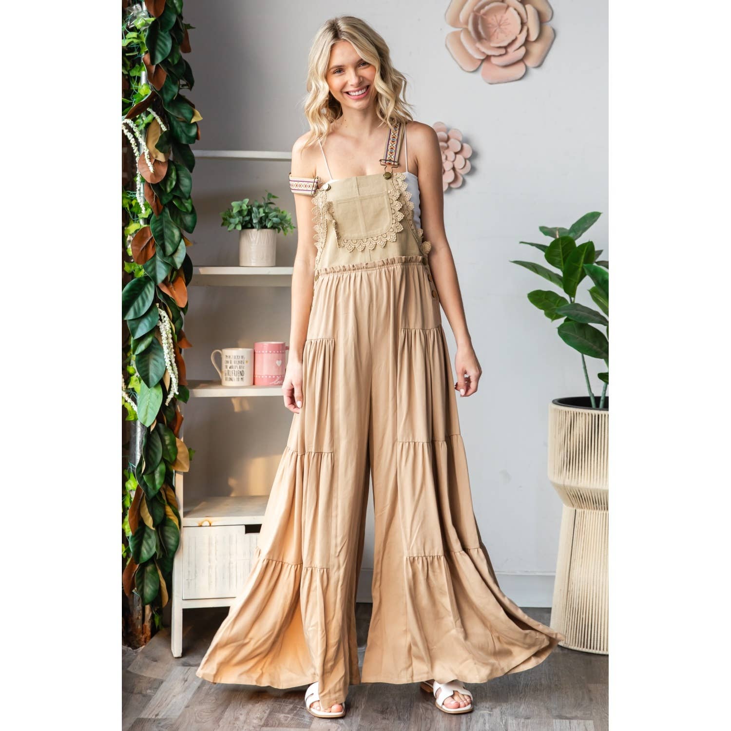 The Embroidered Strap Flowy Jumpsuit by Veveret, a Los Angeles-based brand, is a stylish addition to any women's wardrobe. Made from 100% cotton with a 100% rayon contrast, this jumpsuit combines style and comfort. The embroidered straps add a touch of sophistication, while the flowy design ensures a flattering fit. Ideal for a day out or an evening event, this versatile piece reflects Veveret's commitment to trendy, affordable fashion.