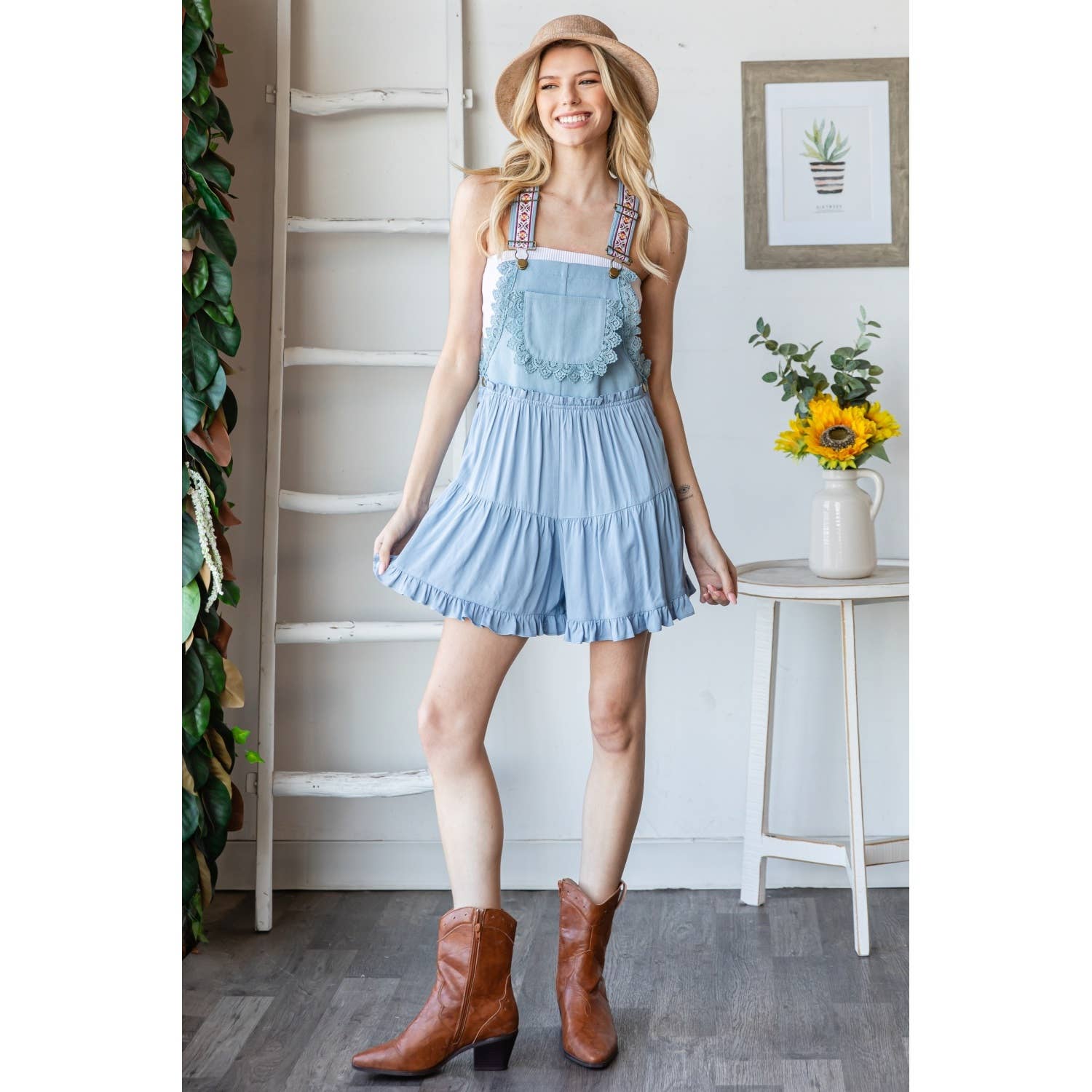 EMBROIDERY OVERALL ROMPER