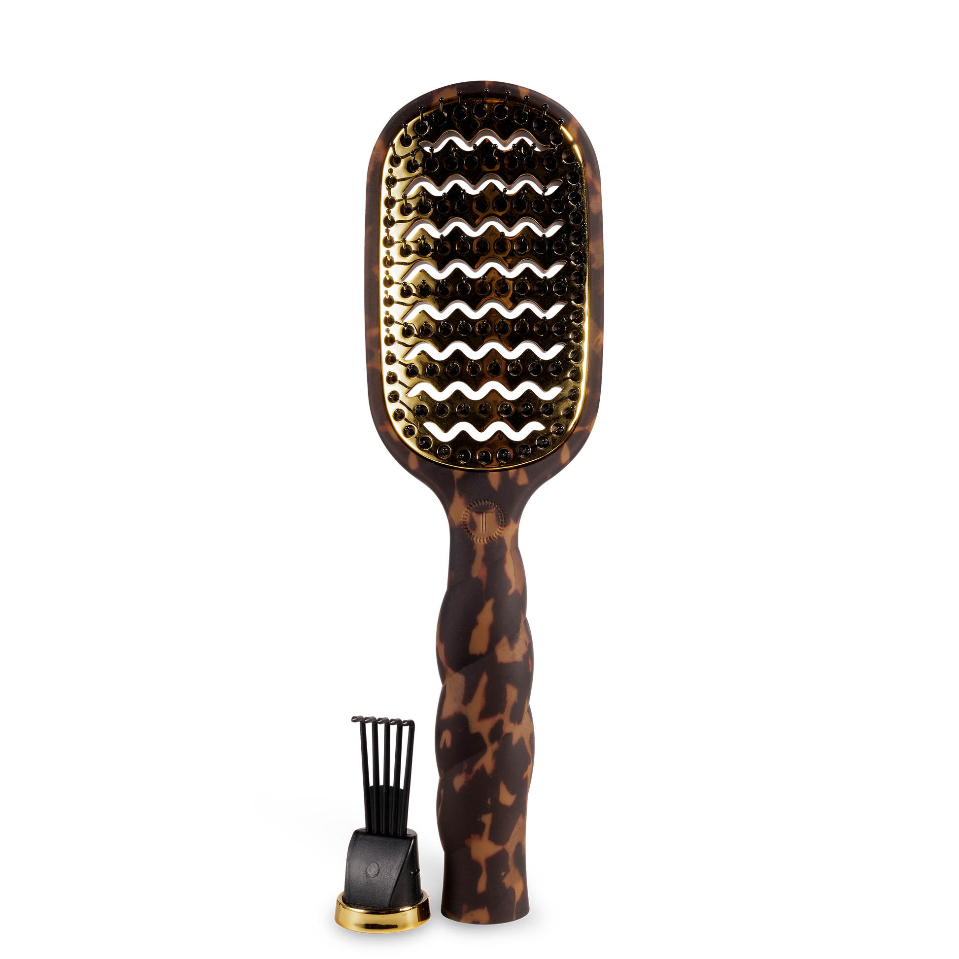 The Vented Brush in Tortoise is your new secret to faster, smoother blowouts. Pairing a Quick-Heat Aluminum Plate that heats up in seconds and distributes heat evenly with a vented design to enhance air flow, this vent brush works perfectly with your blow dryer to cut down on styling time without cutting corners on results.